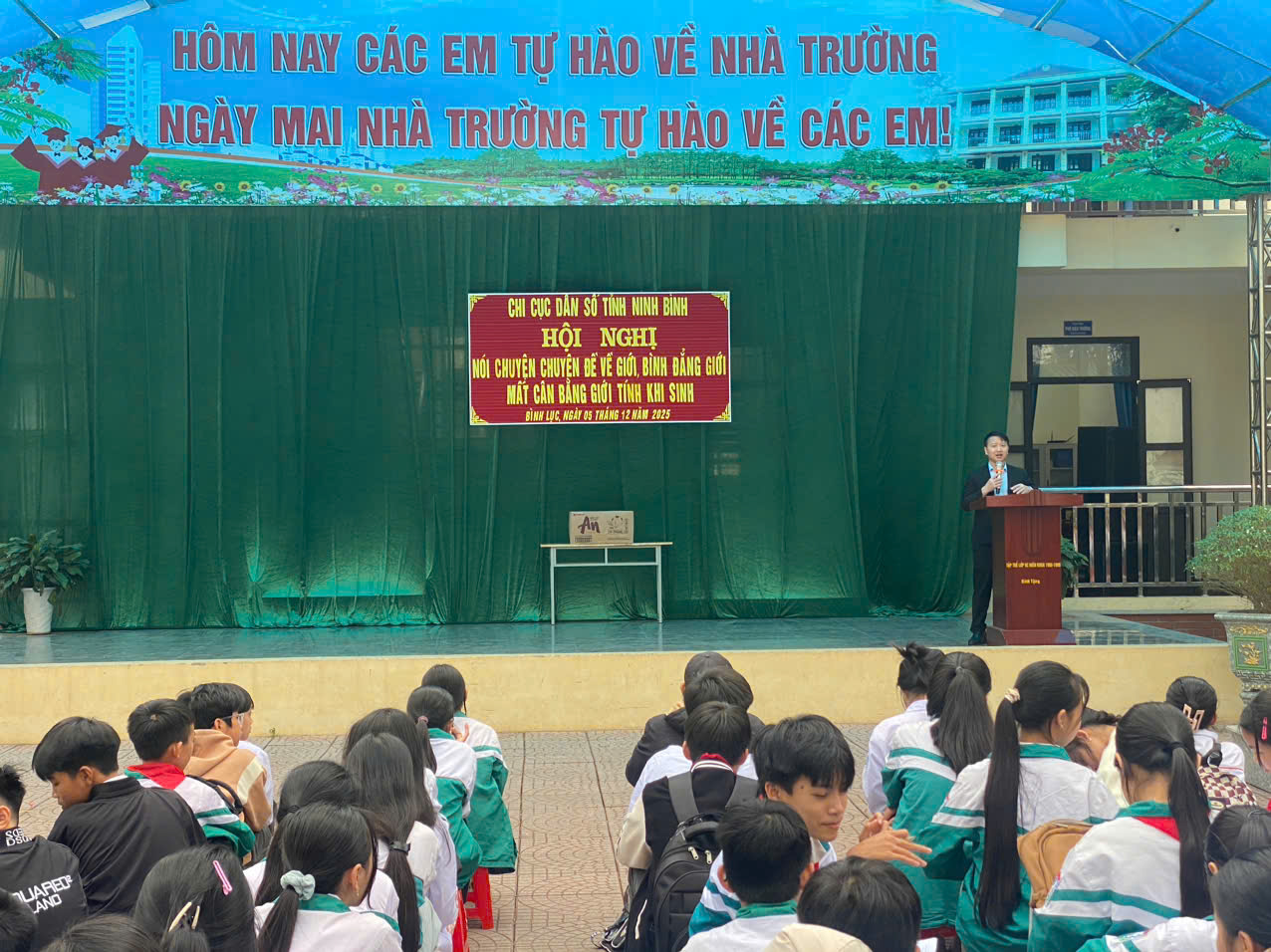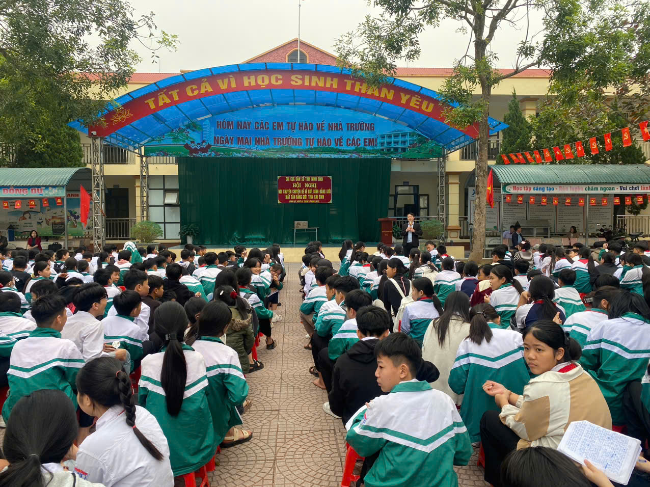 Thực hiện công văn số 220/DS&TE-CLDS ngày 30/11/2025 của Chi cục Dân số và Trẻ em về tổ chức hội nghị nói chuyện chuyên đề về giới, bình đẳng giới, MCBGTKS cho học sinh các trường Trung học cơ sở. Ngày 05/12/2025, Chi cục Dân số và Trẻ em tổ chức hội nghị nói chuyện chuyên đề về giới, bình đẳng giới, MCBGTKS cho học sinh trường THCS Đồng Du, triển khai mô hình truyền thông lồng ghép giảm thiểu MCBGTKS. Tại Hội nghị, các đồng chí cán bộ, giáo viên, nhân viên và học sinh nhà trường được nghe đồng chí Tạ Văn Hòa – Trưởng phòng chất lượng dân số tuyên truyền các vấn đề về giới, bình đẳng giới, mất cân bằng giới tính, chăm sóc sức khỏe vị thành niên. Một số hình ảnh được ghi lại